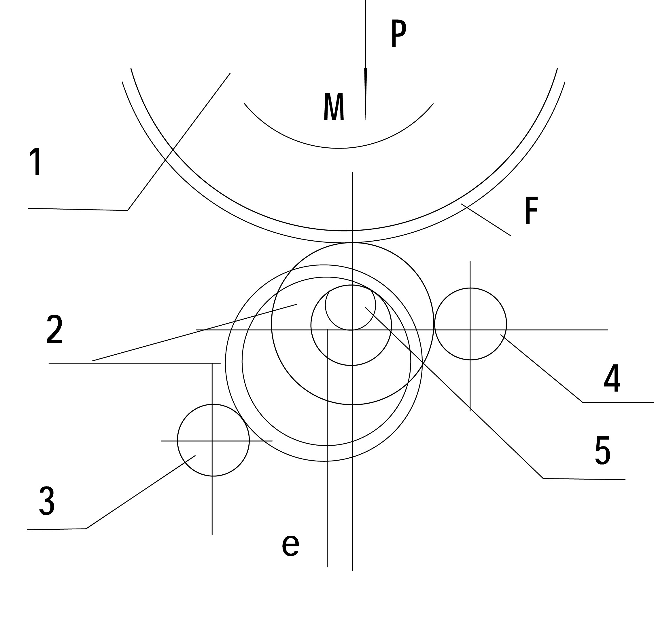 輾環(huán)機工作原理如上圖所示。溫度符合要求的環(huán)坯2套到輾壓輥5上,旋轉著的輾壓輪1在油缸力P的作用下向下運動,與環(huán)坯接觸后,環(huán)坯開始變形。此時環(huán)坯和碾壓輥在摩擦力F的作用下旋轉,環(huán)坯受到壓縮,壁厚逐漸減薄,金屬沿切線方向延伸(軸向也有少量展寬),環(huán)坯的延伸變形處于自由狀態(tài)。當環(huán)坯外徑與固定的推力輥4接觸后,推力輥的反作用力使環(huán)坯外徑增大的同時,產(chǎn)生彎曲變形,將環(huán)坯的幾何中心推向機器中心線的左方,并使輾擴過程平穩(wěn)地進行。當環(huán)坯的外徑增大到予先調整好的信號輥3時,輾壓輪即可向上回程,鍛件卸出,完成一次工作循環(huán)。